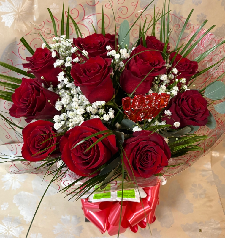 We love using Ecuador Red Explorer Roses, in our opinion they are simply the best Red Roses. Your loved one with receive 12 beautiful Explorer with foliage and gyp created by our skilled florists.