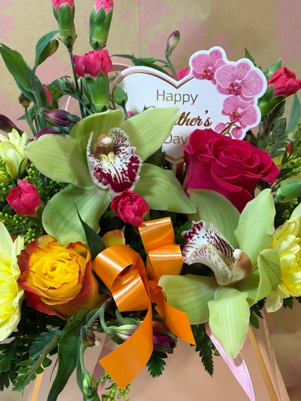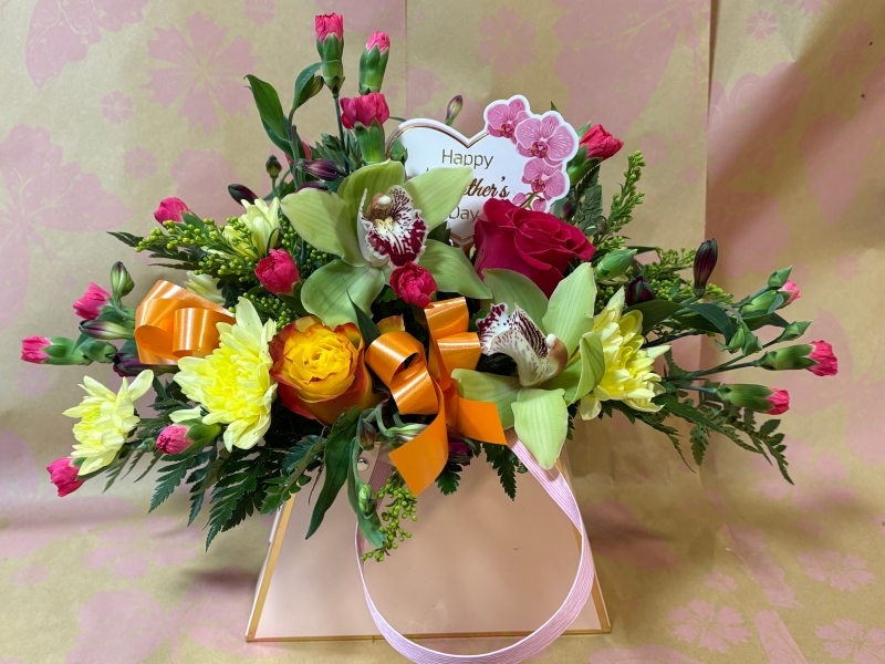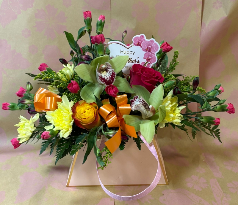 Our popular handbag design filled with beautiful fresh flowers perfect for a lovely Mom.